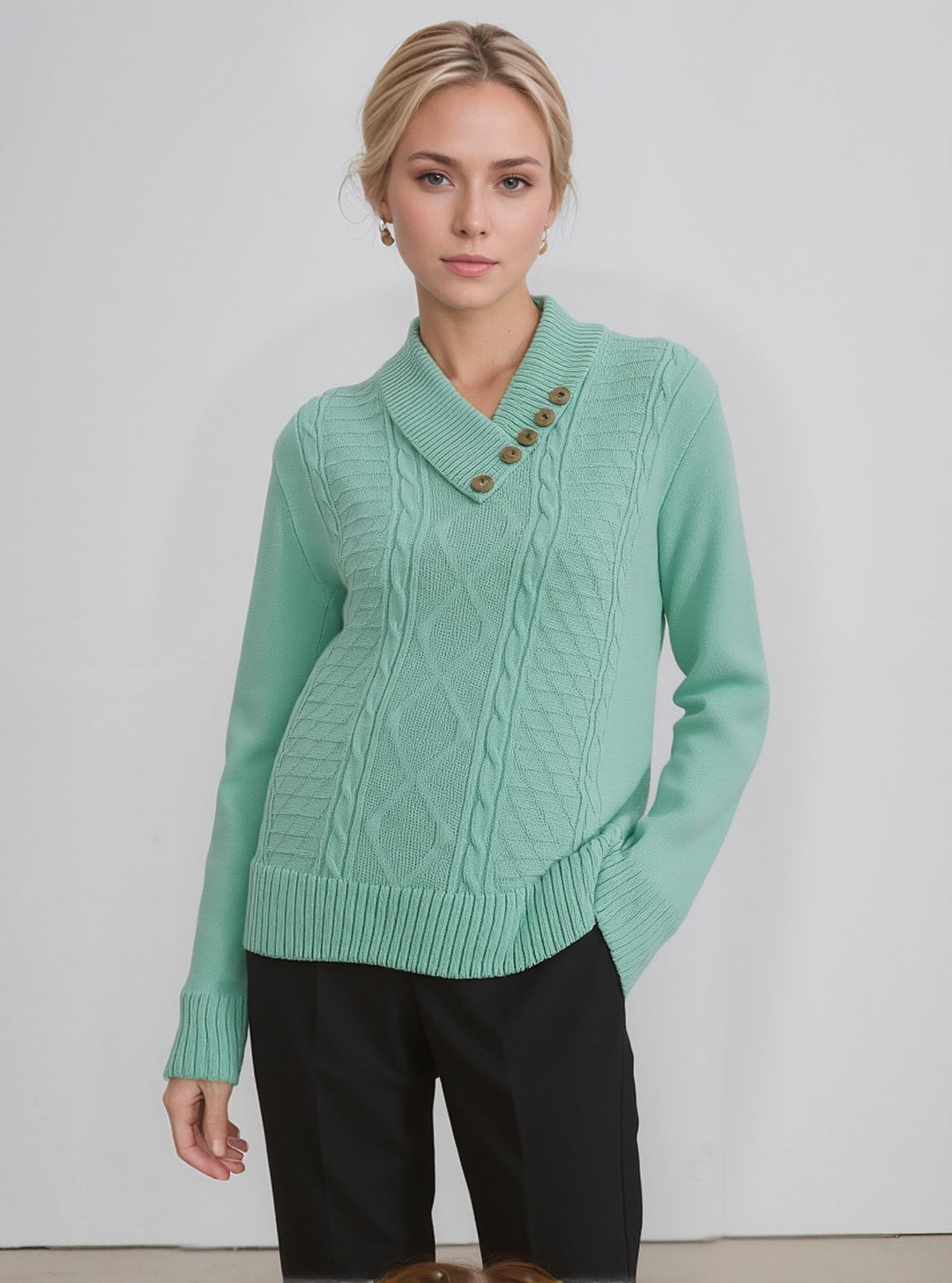 Mint Four Button Cable Knit Jumper