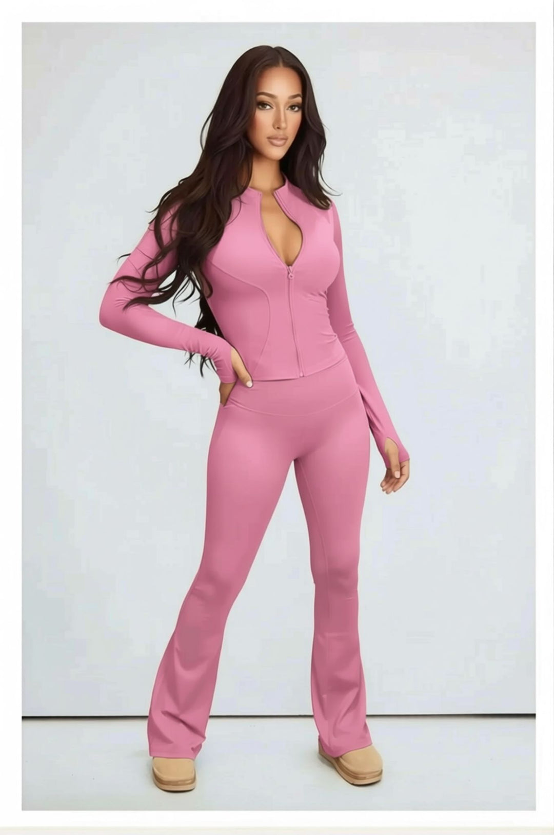 Pink Contour Sculpt Flare Trousers and Zip Sports Jacket Gym Co-Ord