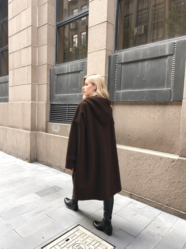 Cozy Brown Teddy Hooded Coat - Oversized & Stylish!