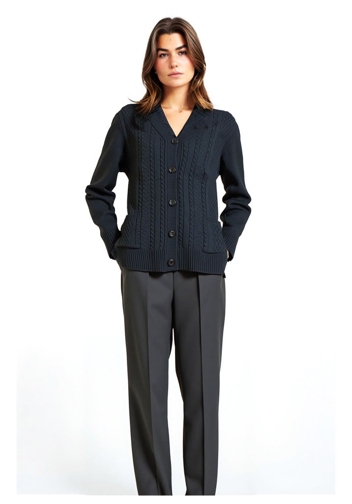 Black Cable Knit Cardigan - Classic Button-Down Sweater