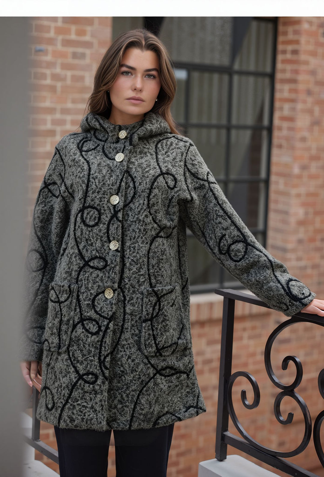 Grey Warm Bouclé Winter Stylish Pattern Coat