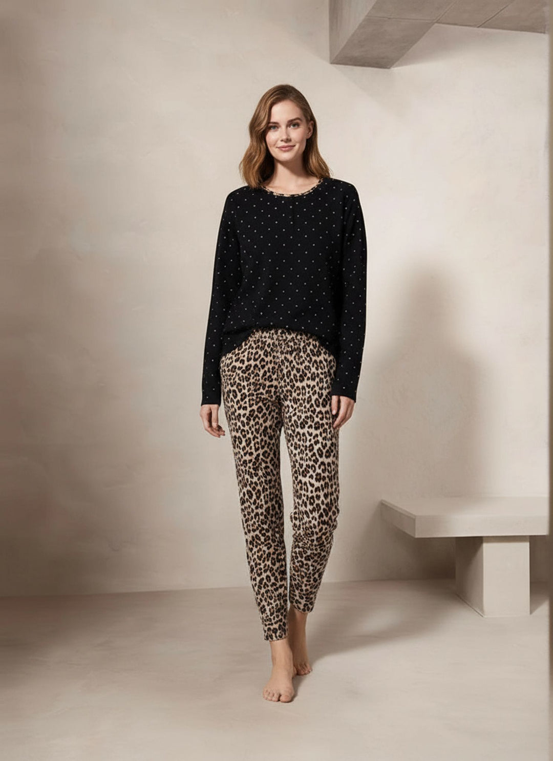 Women’s Black Leopard Print Soft Cotton Pyjamas Set
