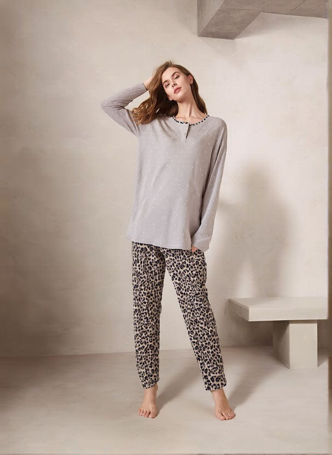 Women’s Nude Pink Leopard Print Soft Cotton Pyjamas Set