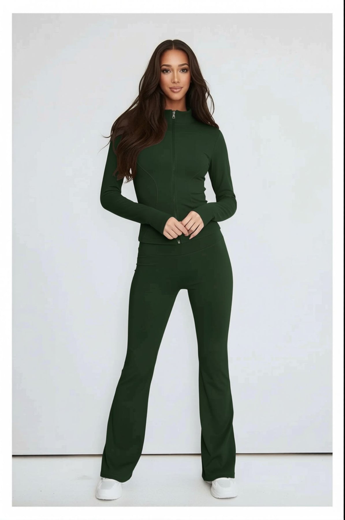 Green Contour Sculpt Flare Trousers and Zip Sports Jacket Gym Co-Ord