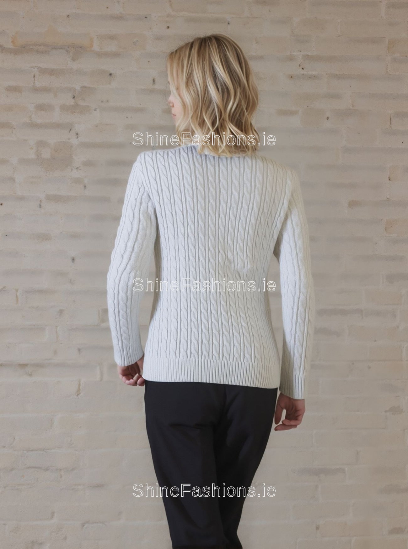- White V-Neck Cable Knit Jumper