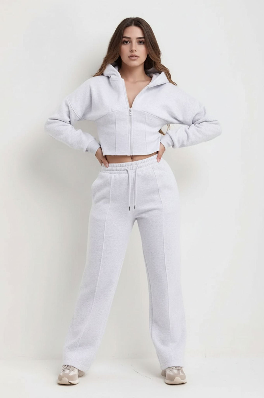 Dove Grey Cropped Zip Up Sweatshirt & Wide Leg Joggers Loungewear Tracksuit