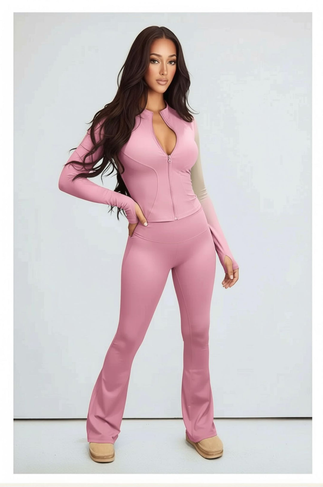 Pink Contour Sculpt Flare Trousers and Zip Sports Jacket Gym Co-Ord